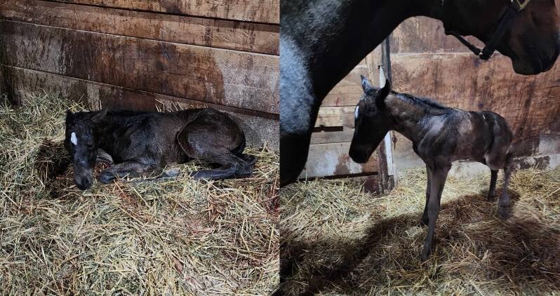 My wife and I got settled into bed when suddenly her phone rang. A mare out at Blue Ridge was in labor, and foaling was imminent. Rebecca quickly got dressed and ran out to deliver a baby. The dogs were very upset by her sudden nighttime departure, and they didn't let me get much sleep until she came home around 1AM. The foal was healthy and strong, and the delivery was textbook. This isn't our horse, but Rebecca loves all the animals that she works with, so it was a relief that things went smoothly.